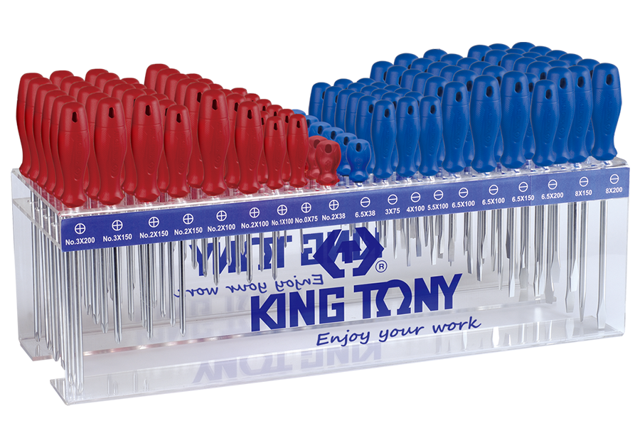 - Display Shelf: The screwdrivers are organized and displayed on a shelf or rack, providing easy access and visibility while keeping the tools organized and neatly stored.
