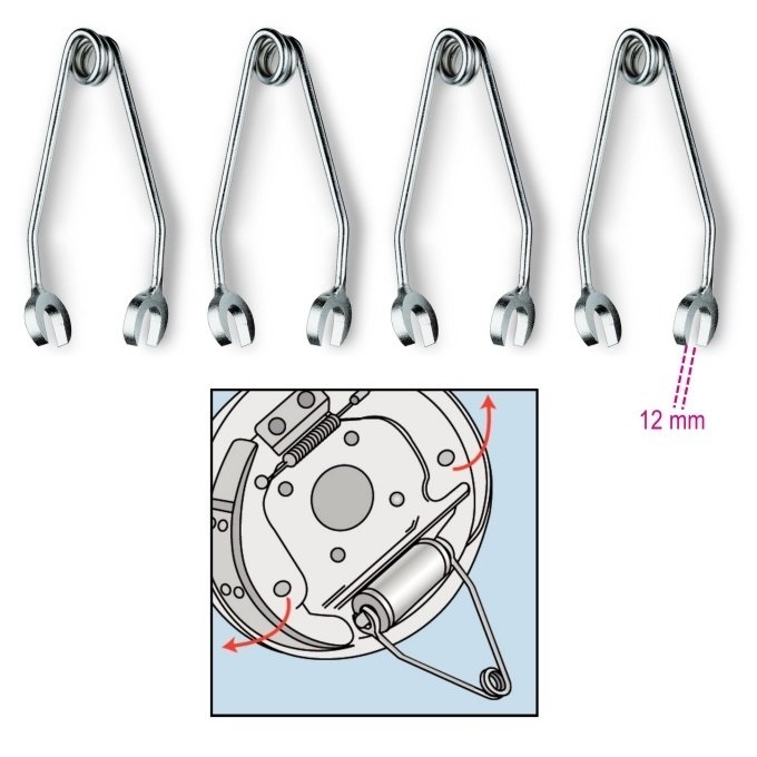 Set of 4 brake piston clamps that securely hold pistons in place on drum type brakes. Prevents brake fluid leakage past the pistons when changing brake shoes.