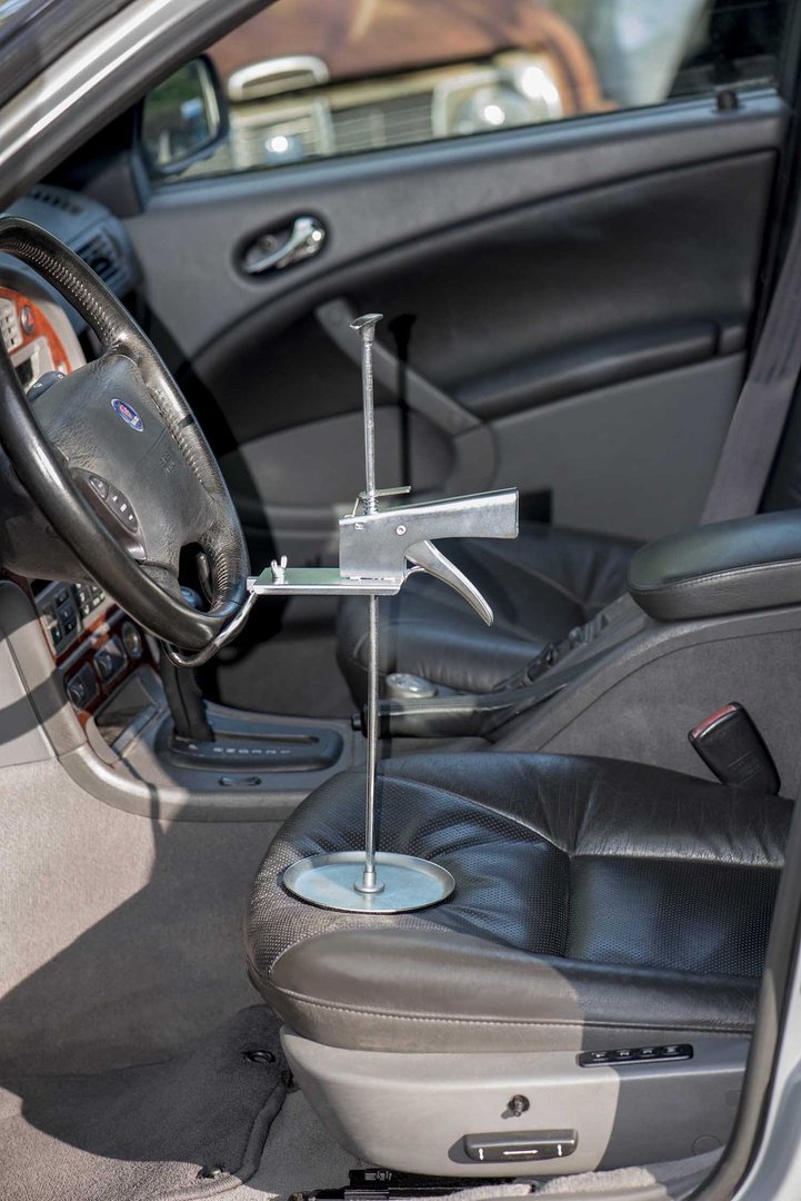 Holds steering wheel in position for alignment adjustments and depresses brake pedal for various brake checks. Steering Wheel Holder and Pedal Depressor Kit features two applications. One: It holds the steering wheel in position for alignment adjustmentsTwo: It depresses the brake pedal for various brake checks, including brake lamp operation
