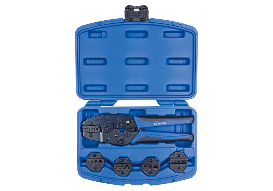 The 5-piece Interchangeable Ratchet Crimping Set is a comprehensive toolkit designed for creating secure and reliable crimps on various types of terminals and connectors. Here’s an overview of what you can expect from this versatile set: