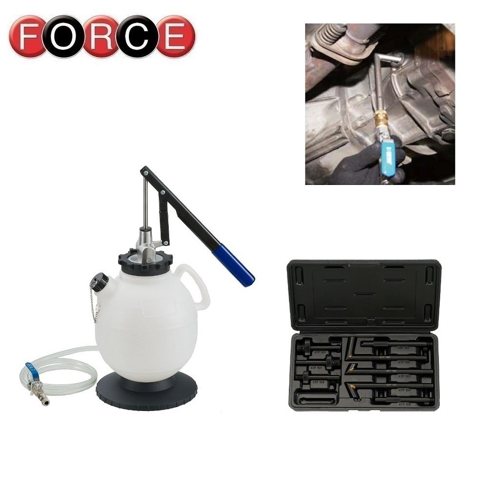 This Force Tools manual transmission fluid transfer pump allows to fill or top off transmissions with up to 7 liters of fluid during refilling. Keeps your automatic transmission lubricated and running smoothly. Capacity: 7 Liter.