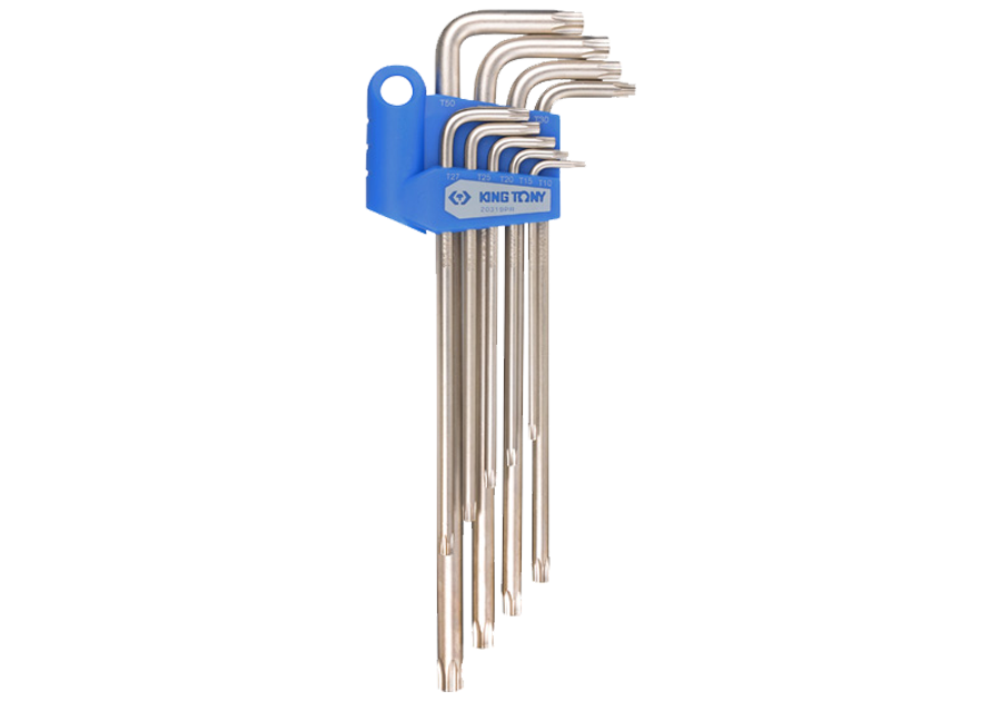 A 9-piece extra long Torx wrench set, ranging from T10 to T50, provides a versatile and comprehensive solution for working with Torx fasteners in various applications. With their extended shafts, durable construction, and precision-machined tips, these wrenches offer excellent reach, grip, and torque for accessing and tightening or loosening recessed or hard-to-reach fasteners. Whether used in automotive repair, bicycle maintenance, appliance repair, electronics assembly, or furniture assembly, an extra long Torx wrench set is a valuable addition to any toolkit.