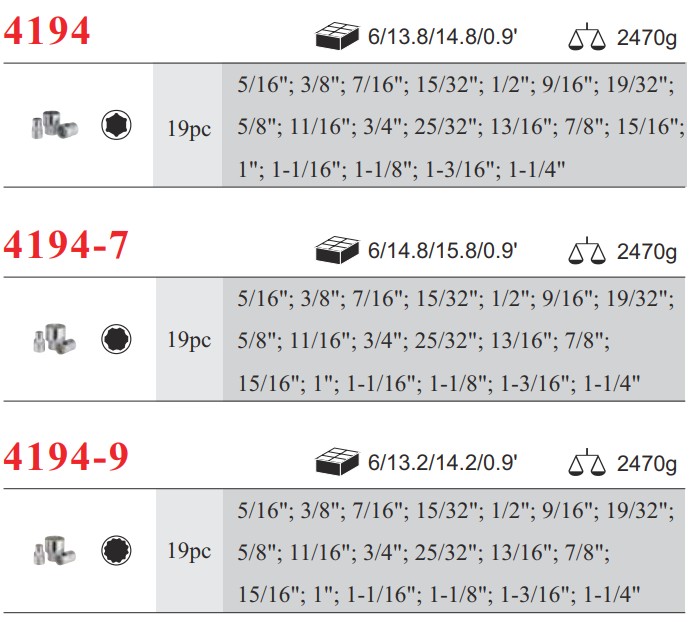 19PC 1/2″ Drive Surface Socket Set 5/16″-1-1/4″