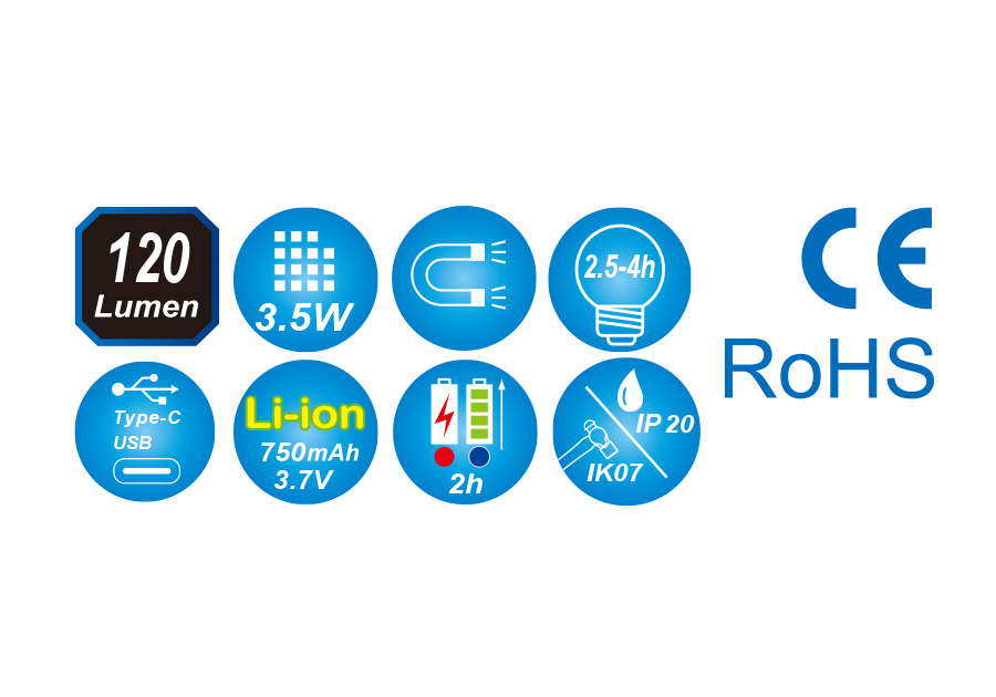 - Rechargeable battery : 3.7V 750mAh Li-ion